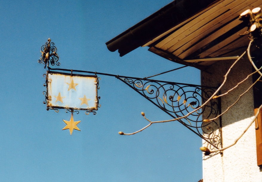 Kurz vor dem Abbruch des "alten Sternen" war das schmiedeeiserne Wirtshausschild plötzlich verschwunden. Aber nicht gestohlen, sondern von einem besorgten Ortsbürger bei Nacht und Nebel in Sicherheit gebracht worden, um es vor der Zerstörung zu bewahren - eine rührende Geste der Wertschätzung. Foto: Archiv des Ortsmuseums, Urheber unbekannt.