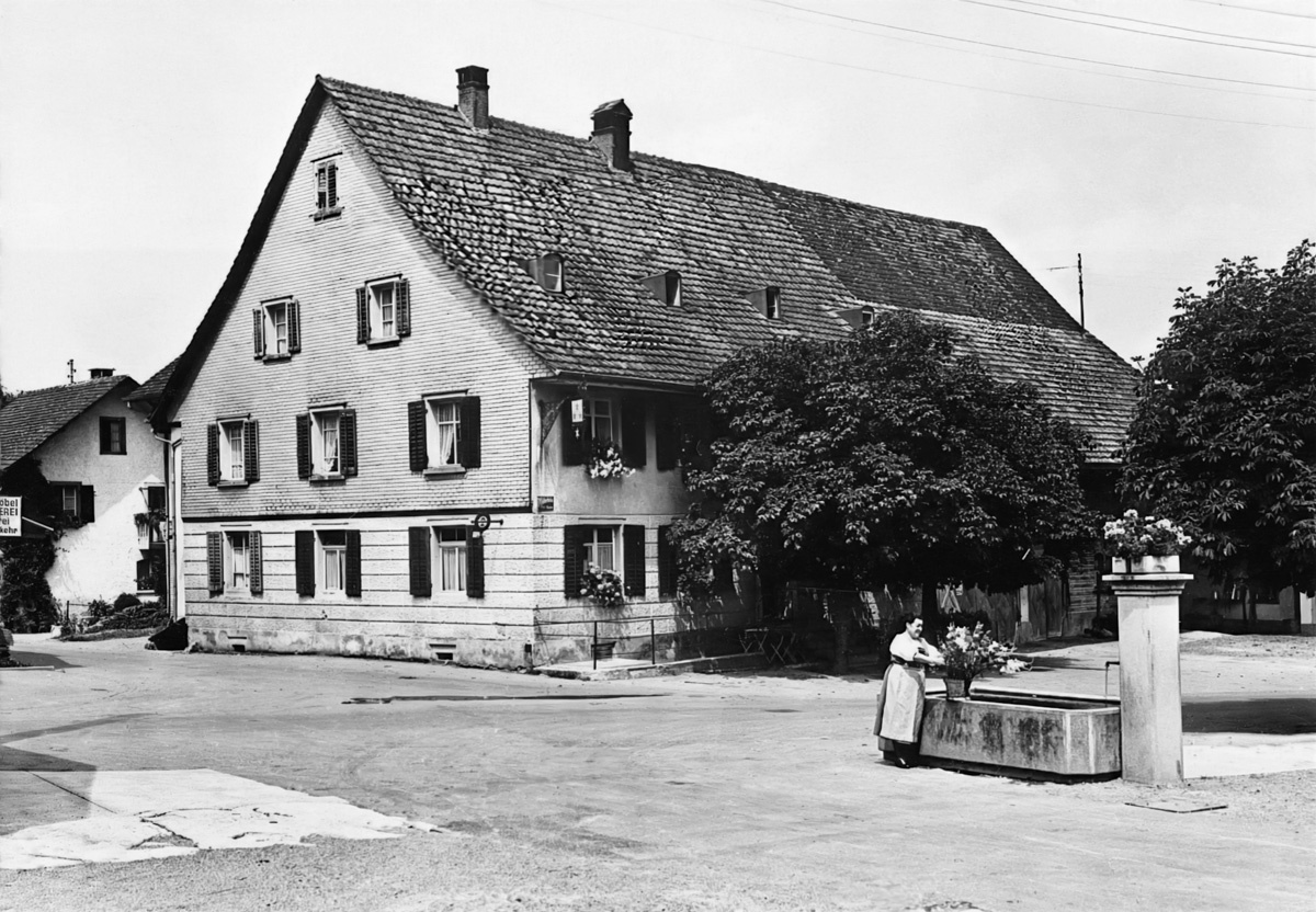 Ein geradezu ikonisches Foto aus dem frühen 20. Jahrhundert. Der Gasthof "Zu den drei Sternen" am Sternenplatz im Dorfzentrum Spreitenbach.