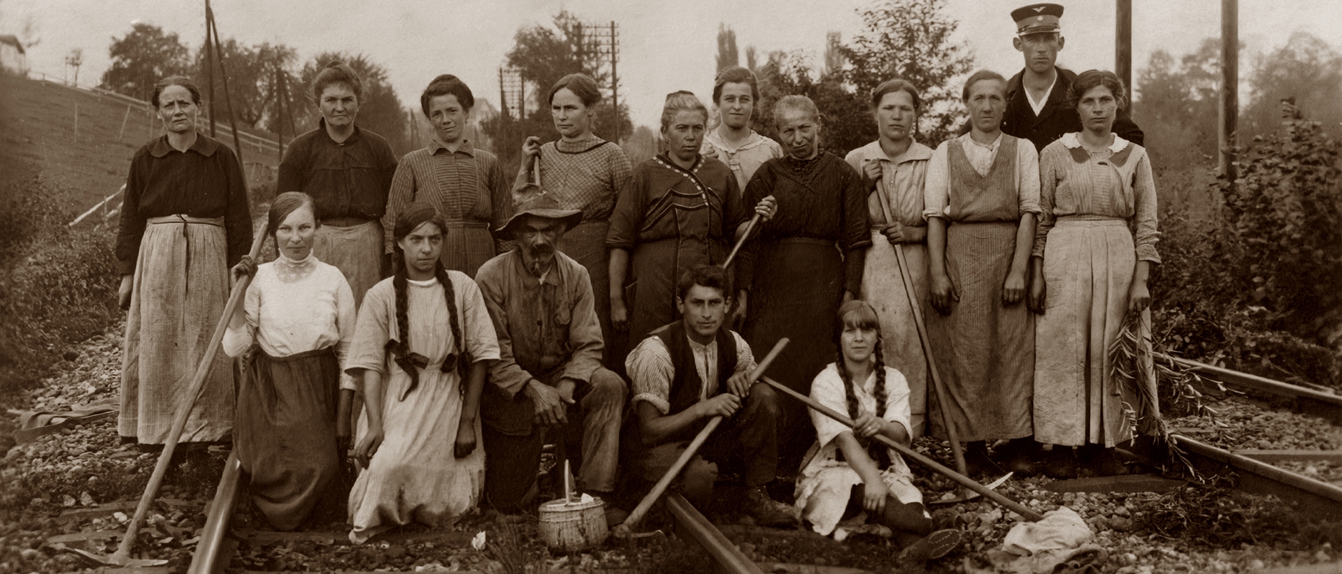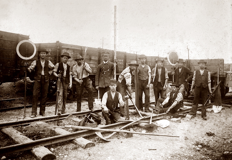 "Gleisbau bei Killwangen-Spreitenbach". Restauriertes Foto aus dem Nachlass von Kurt Wassmer. Sammlung des Ortsmuseums Spreitenbach.
