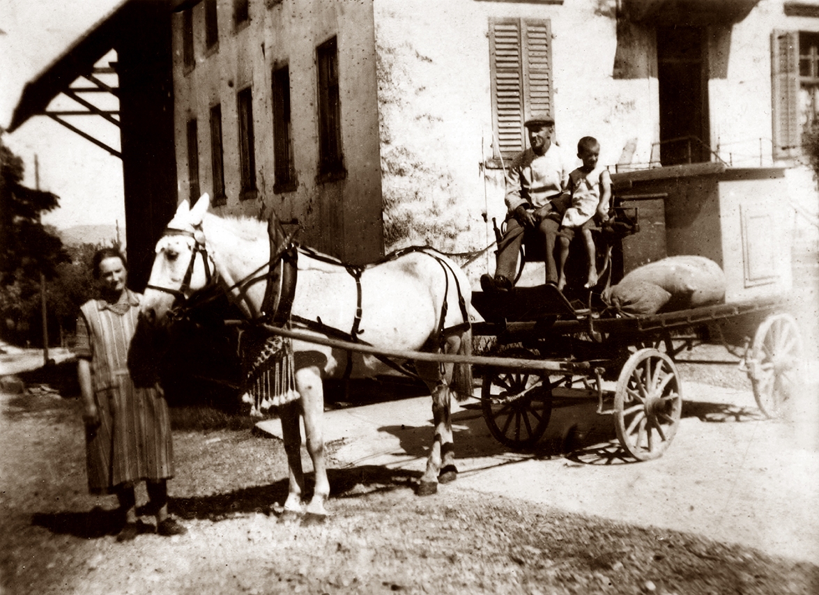 "Familie Bär, Bäcker. Vater Edwin und Mutter, ca. 1928". Ein restauriertes Foto aus dem Nachlass von Kurt Wassmer. Sammlung des Ortsmuseums Spreitenbach.