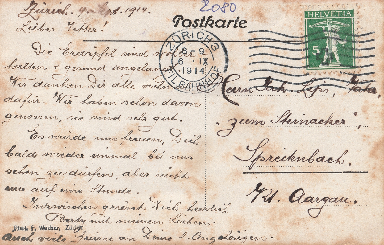 Postkarte aus dem Jahre 1914. Ein historisches Zeugnis der Kommunikationsgeschichte und der sprachlichen Entwicklung.