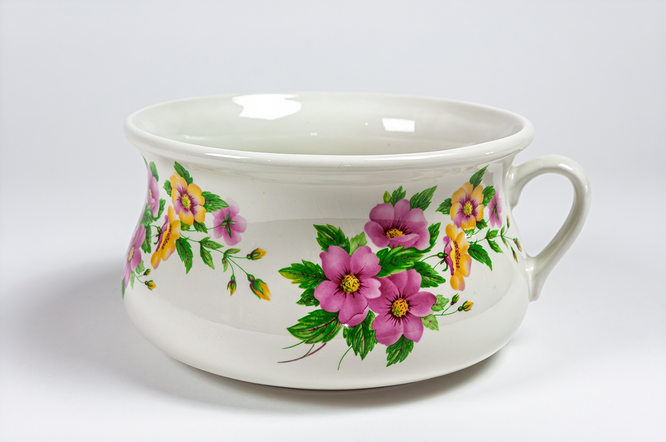 Kinder-Nachttopf. Keramik der Manufaktur Portmeirion, UK. Susan Williams-Ellis und ihr Ehemann Euan Cooper-Willis gründeten die Portmeirion Pottery im Jahr 1960. Ein Artefakt aus der Sammlung des Ortsmuseums Spreitenbach. Foto: R.H.